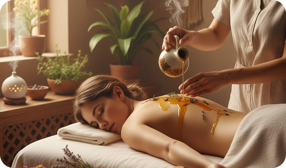 Nirvana treatment is a comprehensive therapeutic approach that promotes cleansing, nourishment, and holistic healing to bring balance and vitality to the whole person. It combines traditional ayurvedic methods (e.g., Abhyanga , shirodhara, sarvang ksheerdhara, kashaya snana) aimed at detoxification, rejuvenation, and achieving overall balance of the body, mind, and spirit – with a plan created based on individual consultation and assessment.